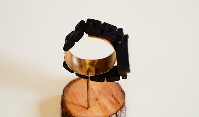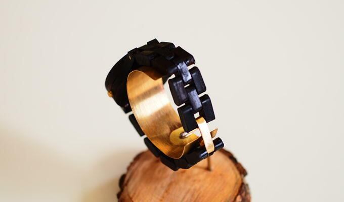 一つ一つ手作業で産み出し、材木に黒檀を使用した木製腕時計。