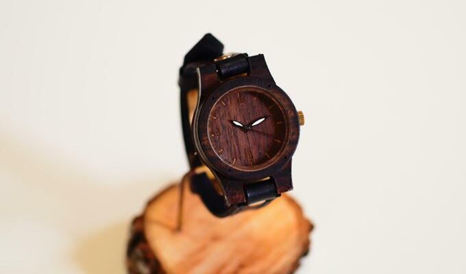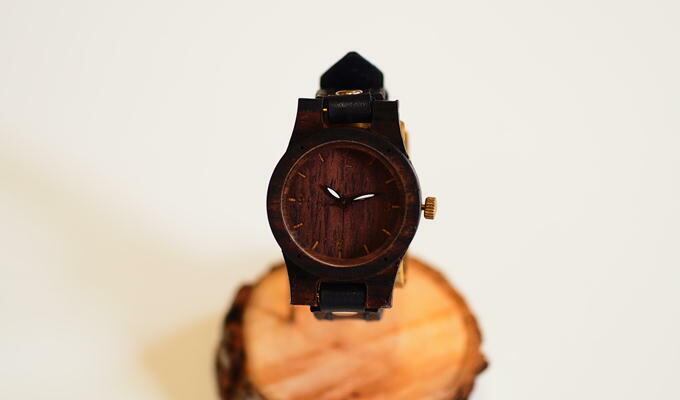 ベルトはレザーにしたので、サイズ調整も楽にでき、木・革の味わいを楽しめる時計となっています。