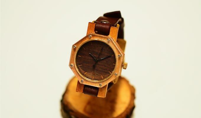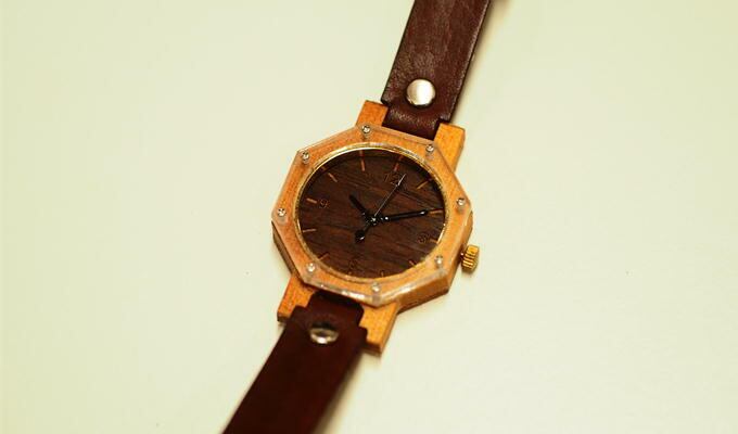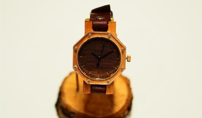一つ一つ手作業で産み出し、材木に桜を使用した木製腕時計。