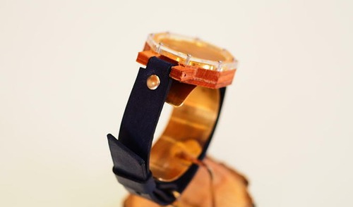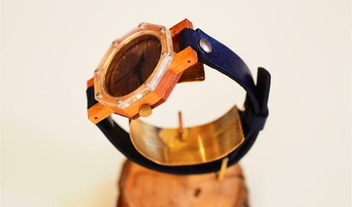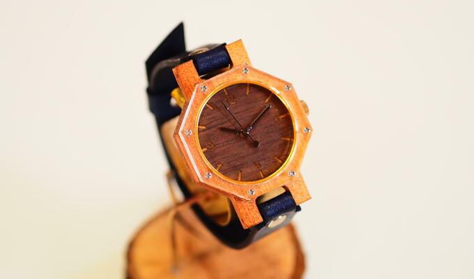 一つ一つ手作業で産み出し、材木に桜を使用した木製腕時計。