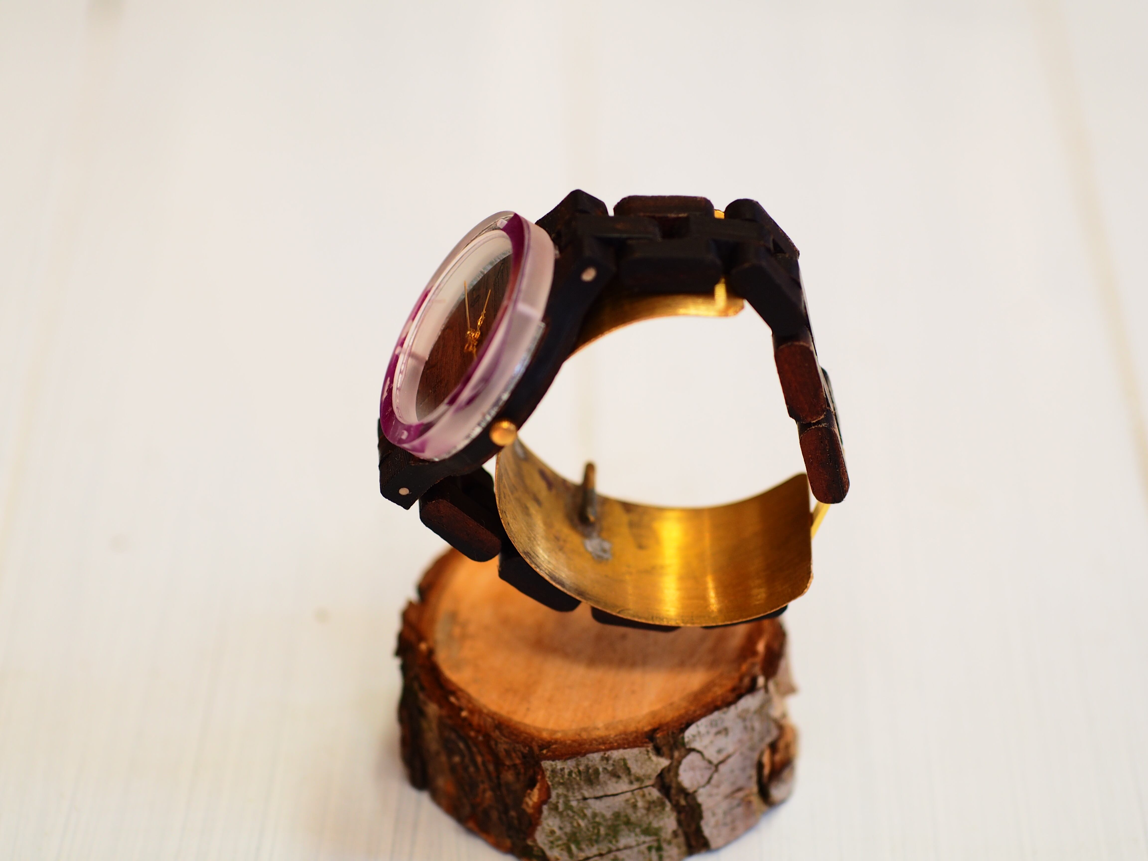 一つ一つ手作業で産み出し、材木に唐木三大銘木黒檀を使用した木製腕時計。