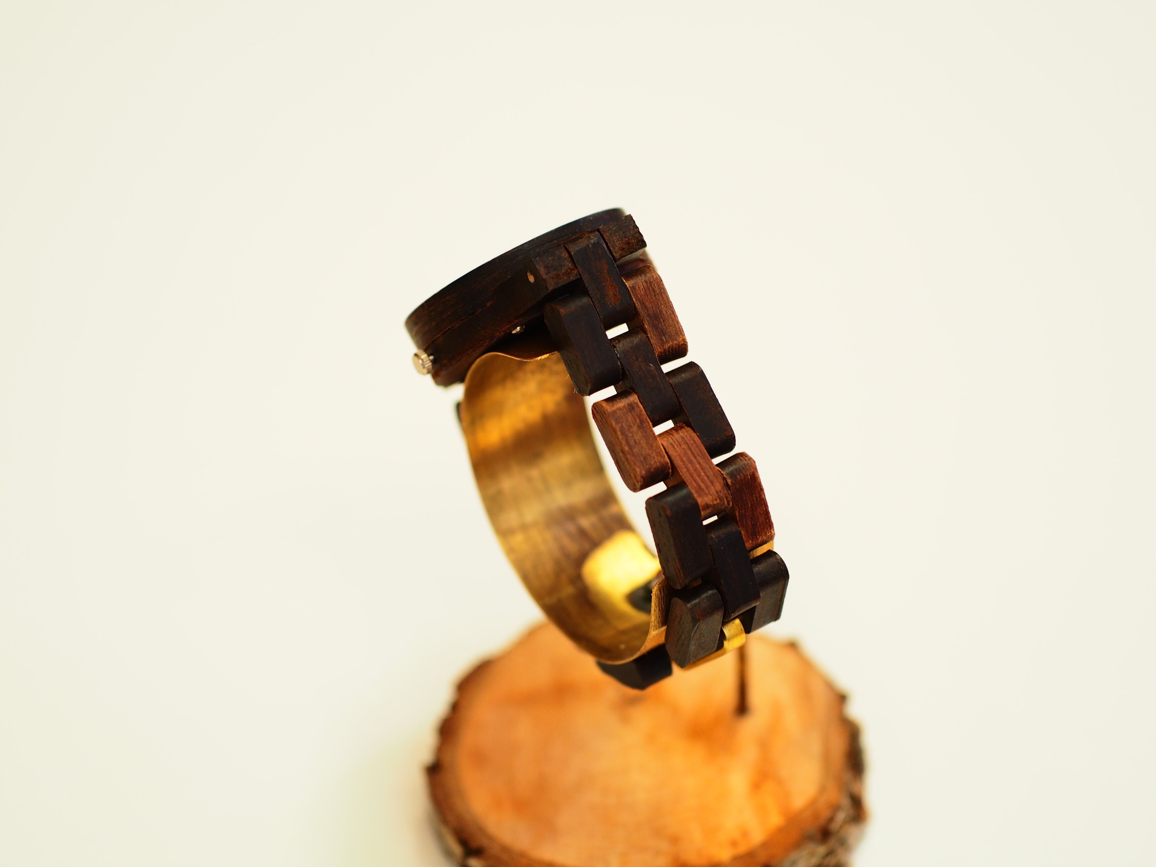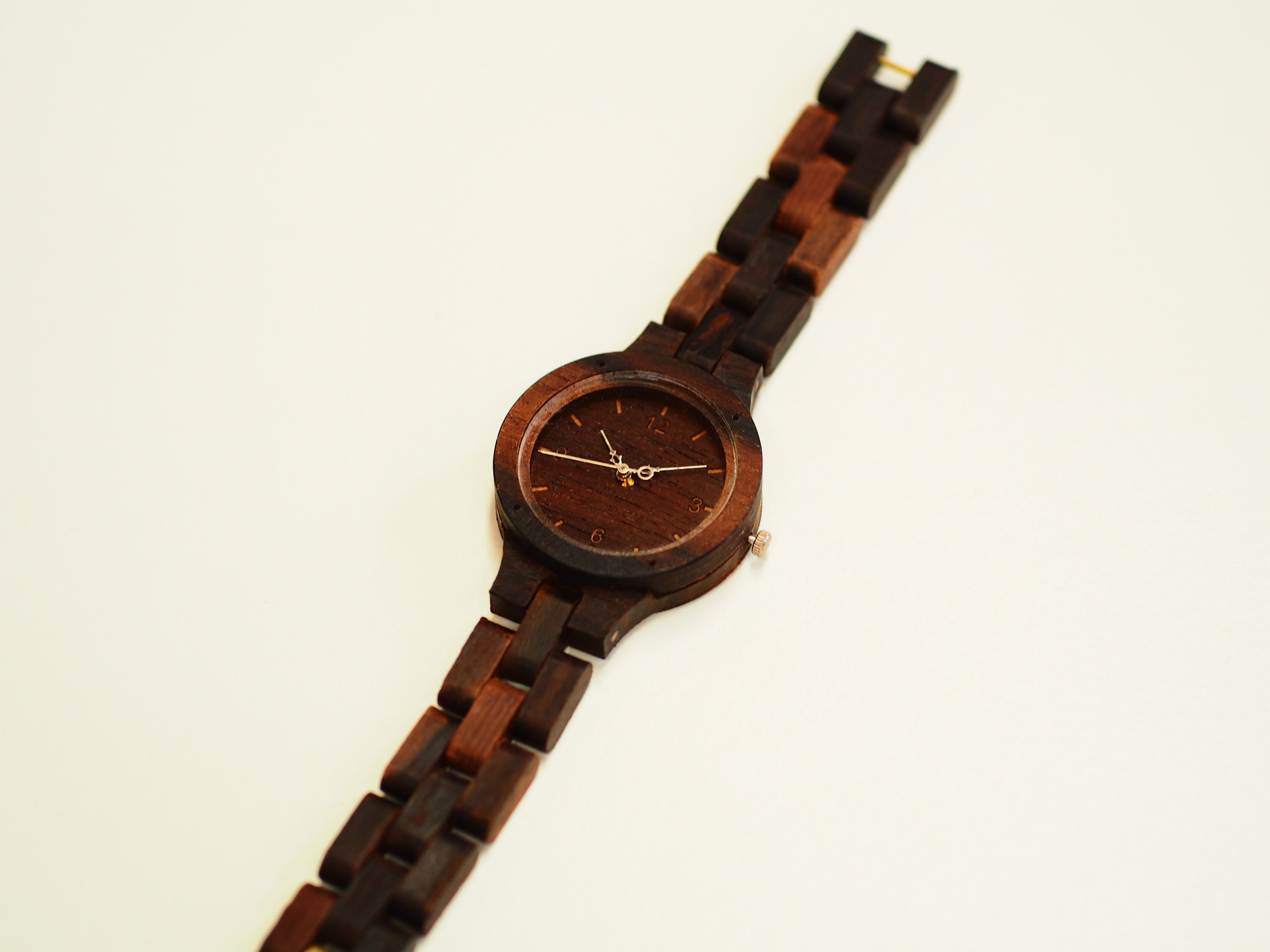 一つ一つ手作業で産み出し、材木に黒檀を使用した木製腕時計。