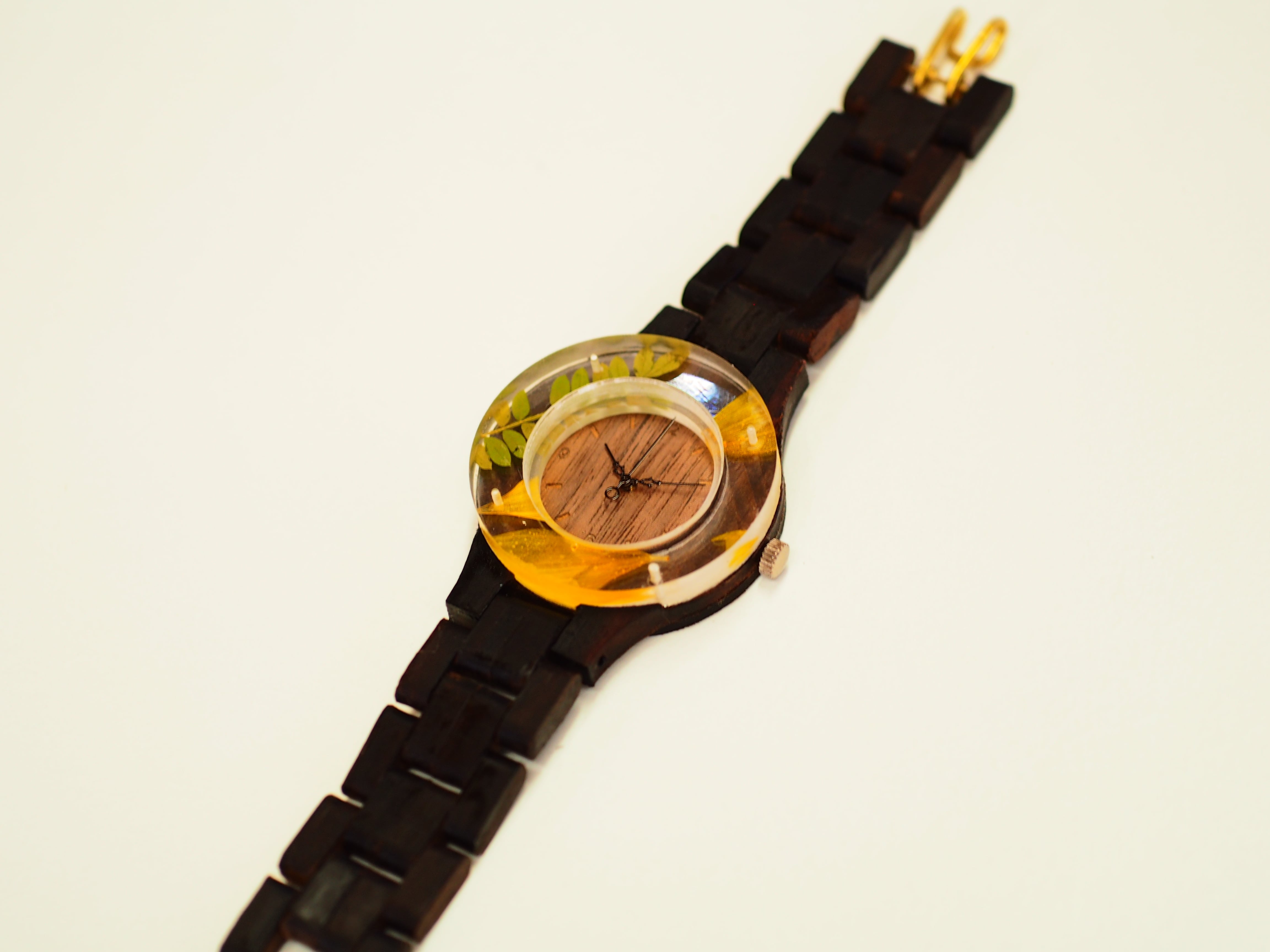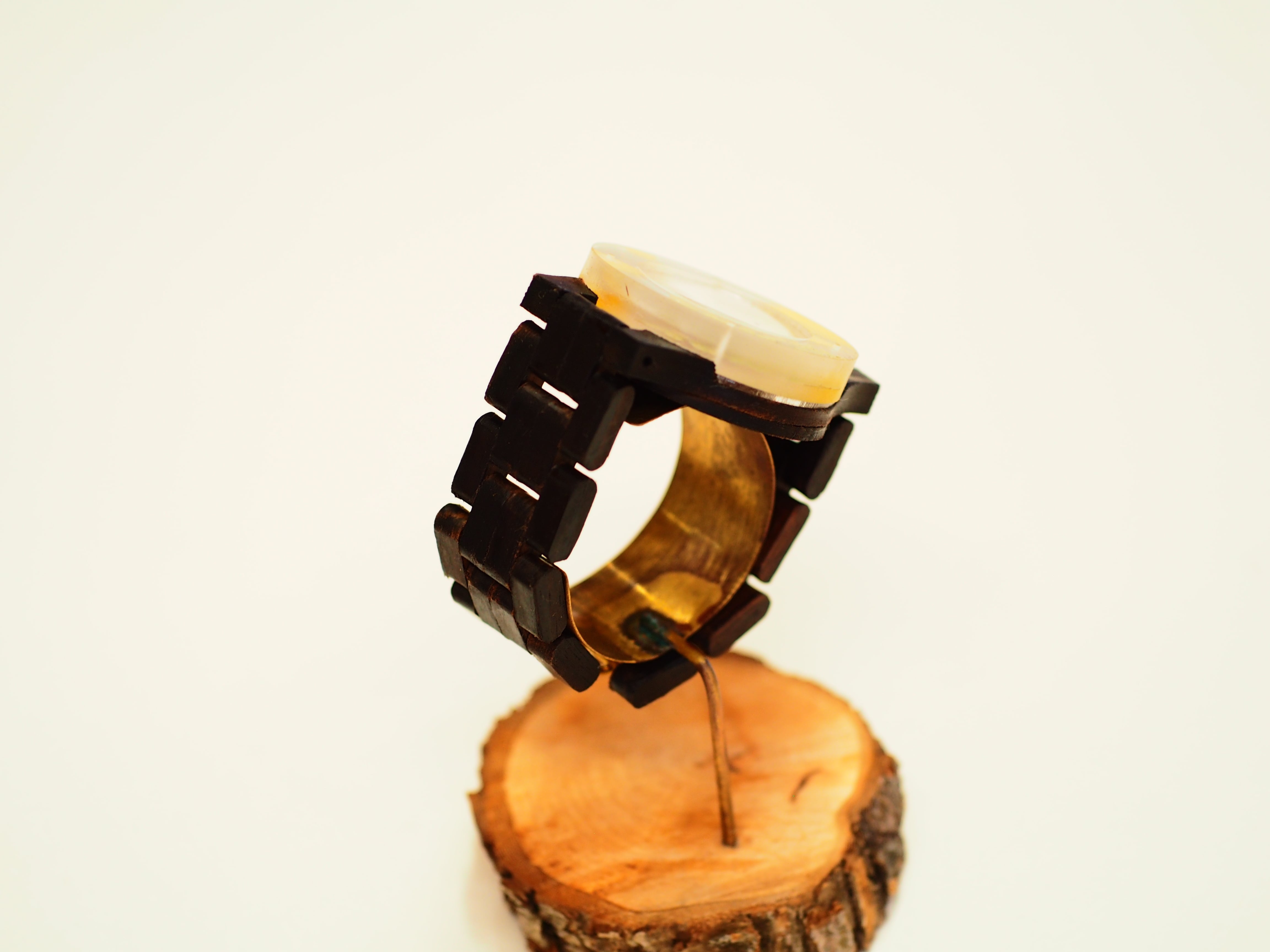 一つ一つ手作業で産み出し、材木に唐木三大銘木黒檀を使用した木製腕時計。