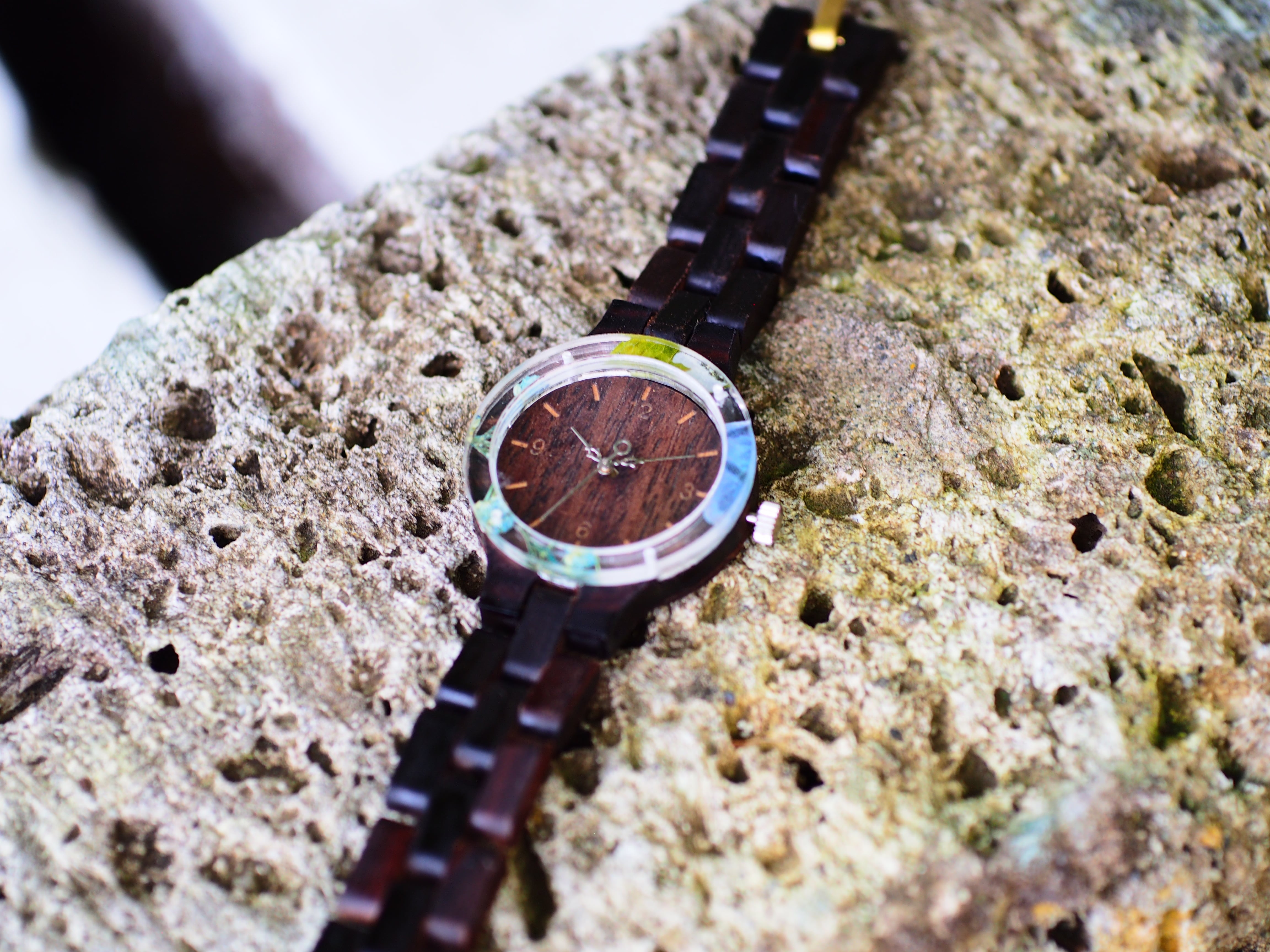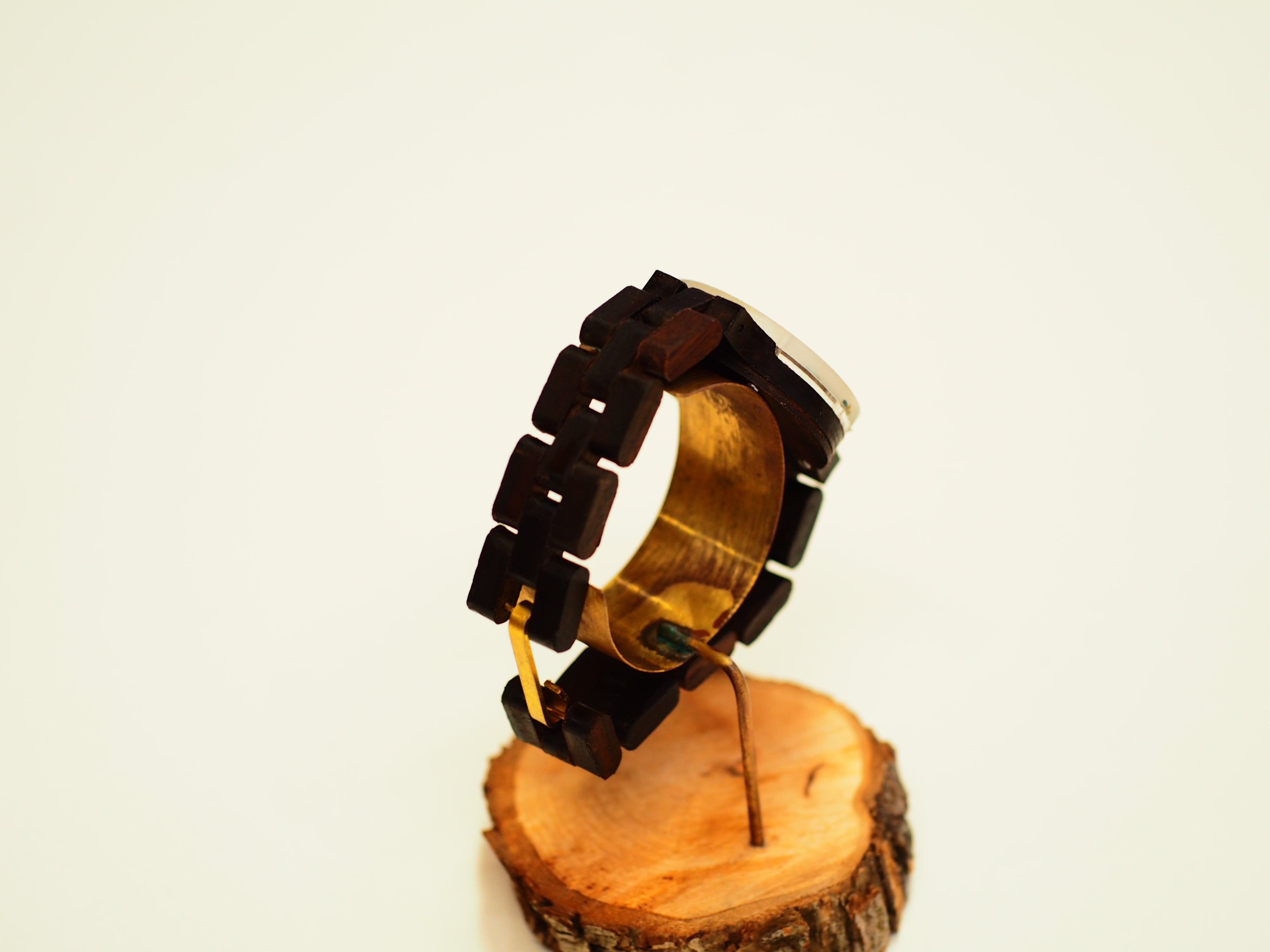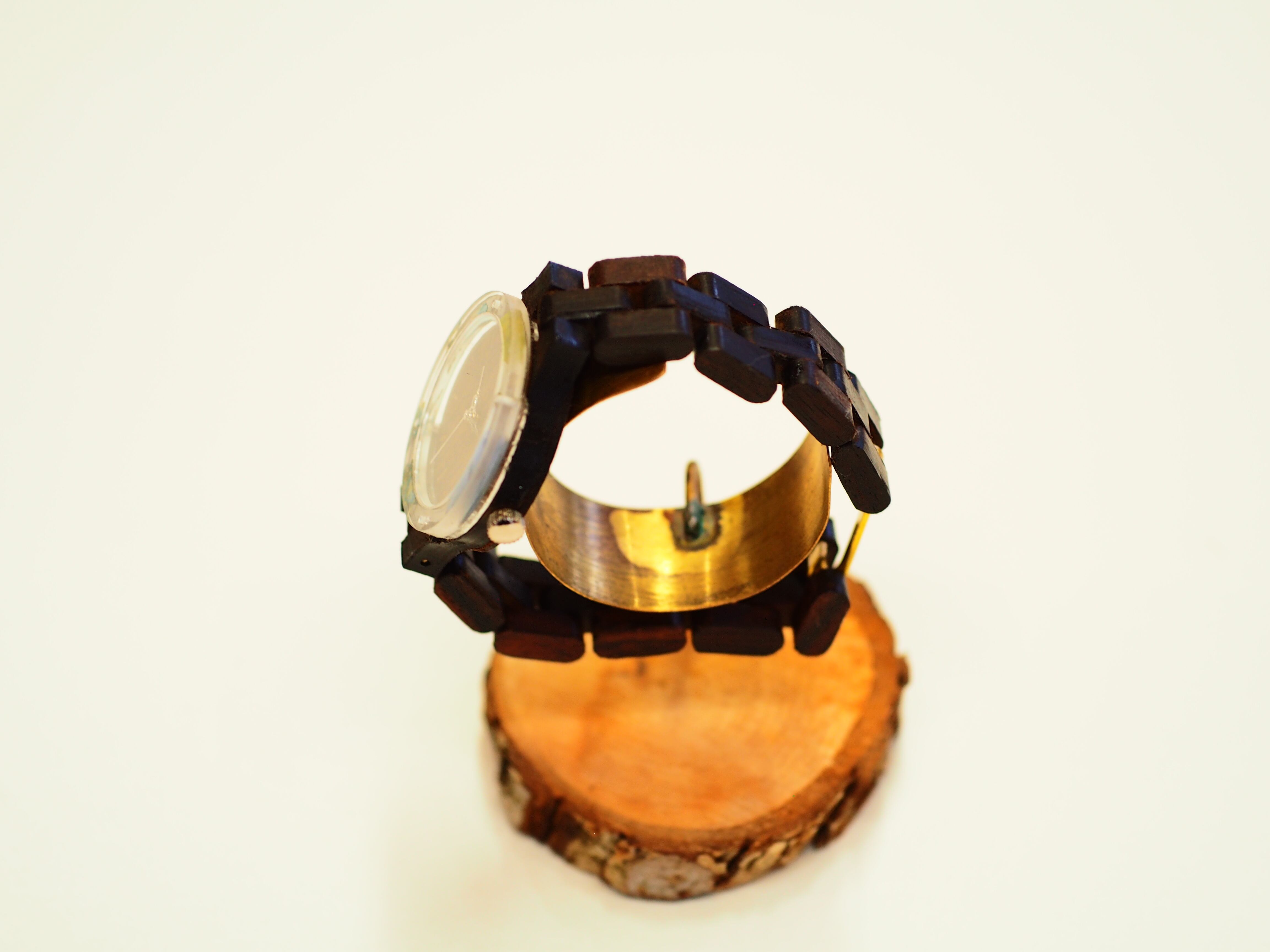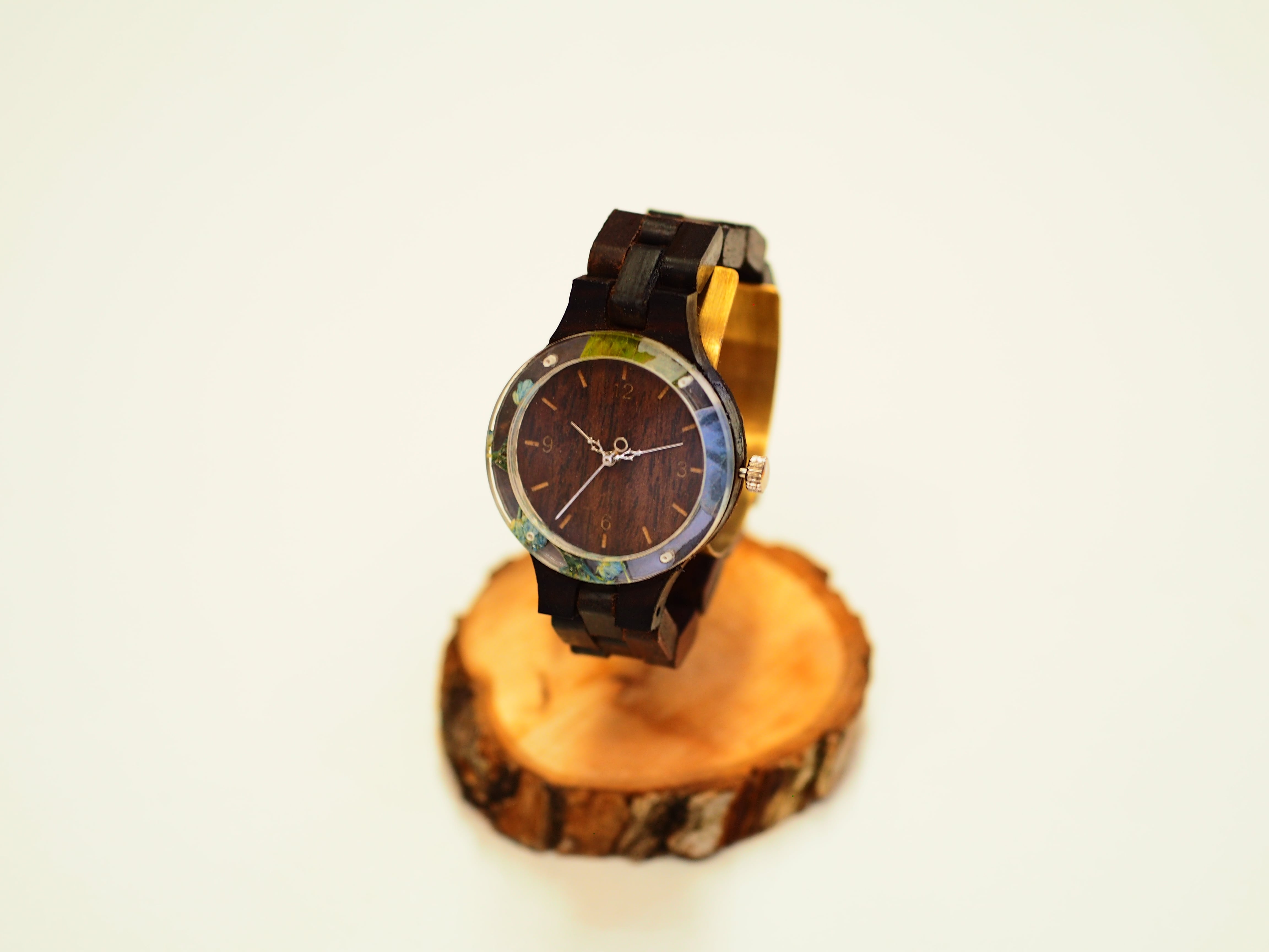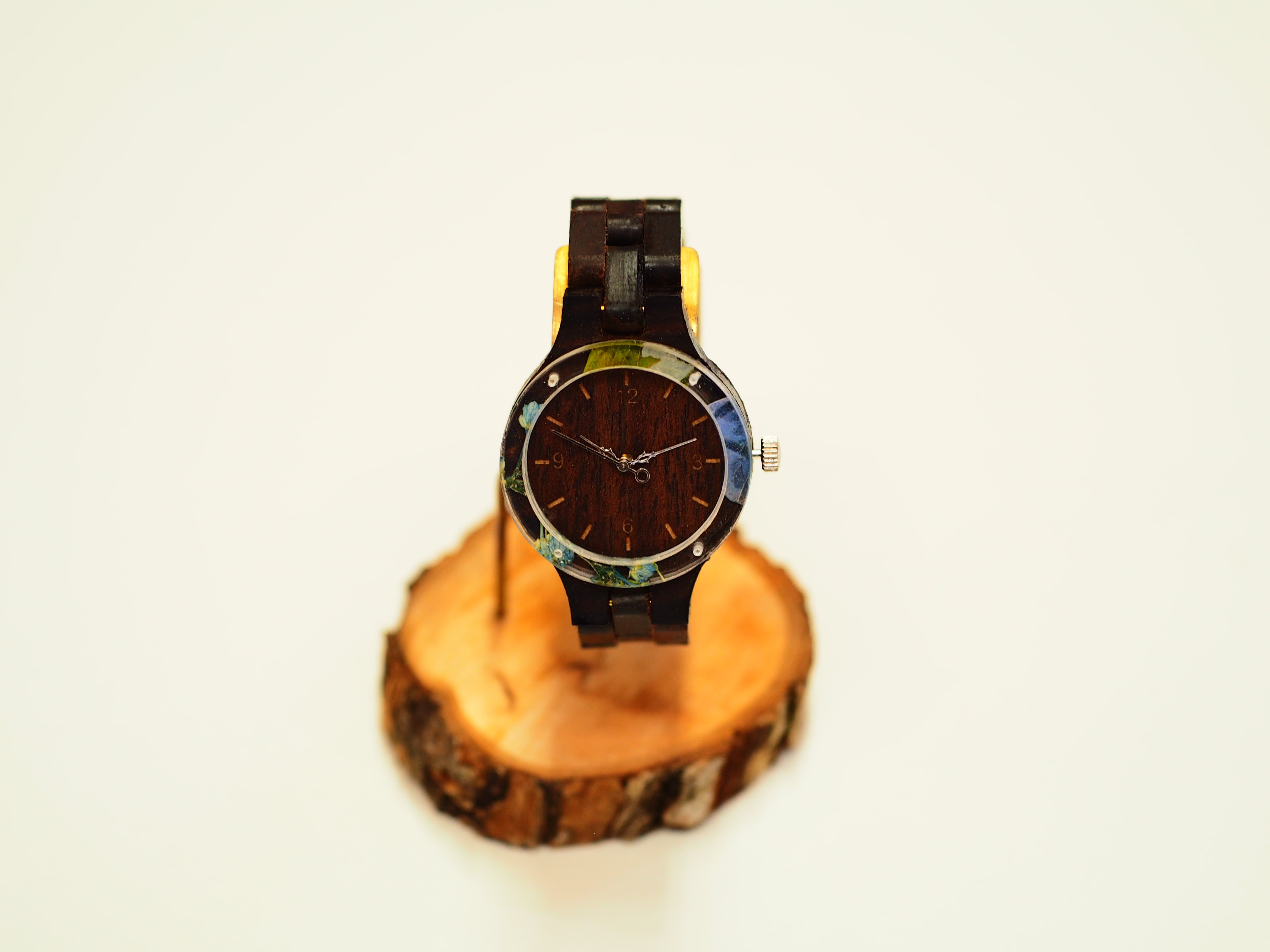 一つ一つ手作業で産み出し、材木に唐木三大銘木黒檀を使用した木製腕時計。