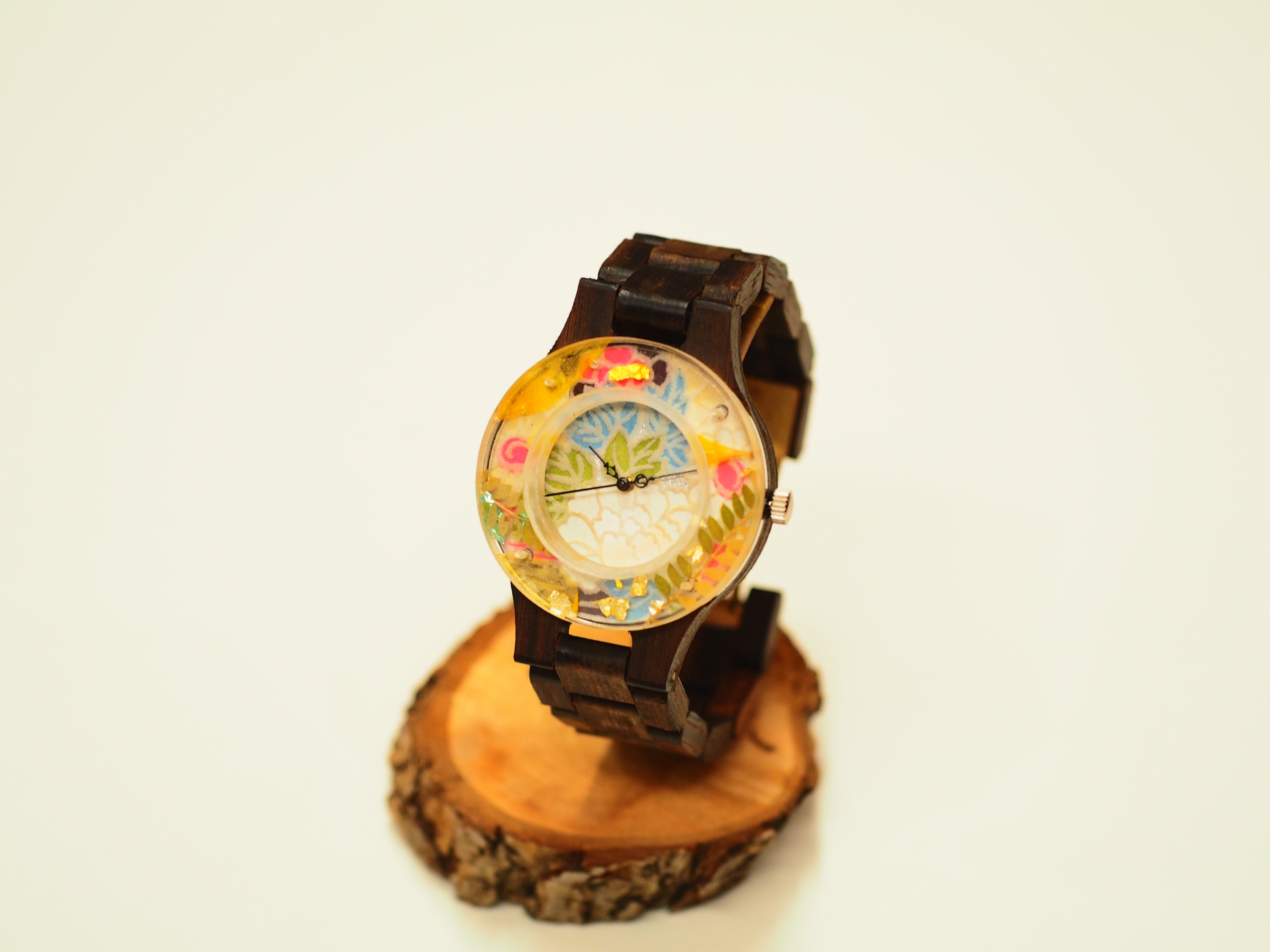 一つ一つ手作業で産み出し、材木に唐木三大銘木黒檀を使用した木製腕時計。