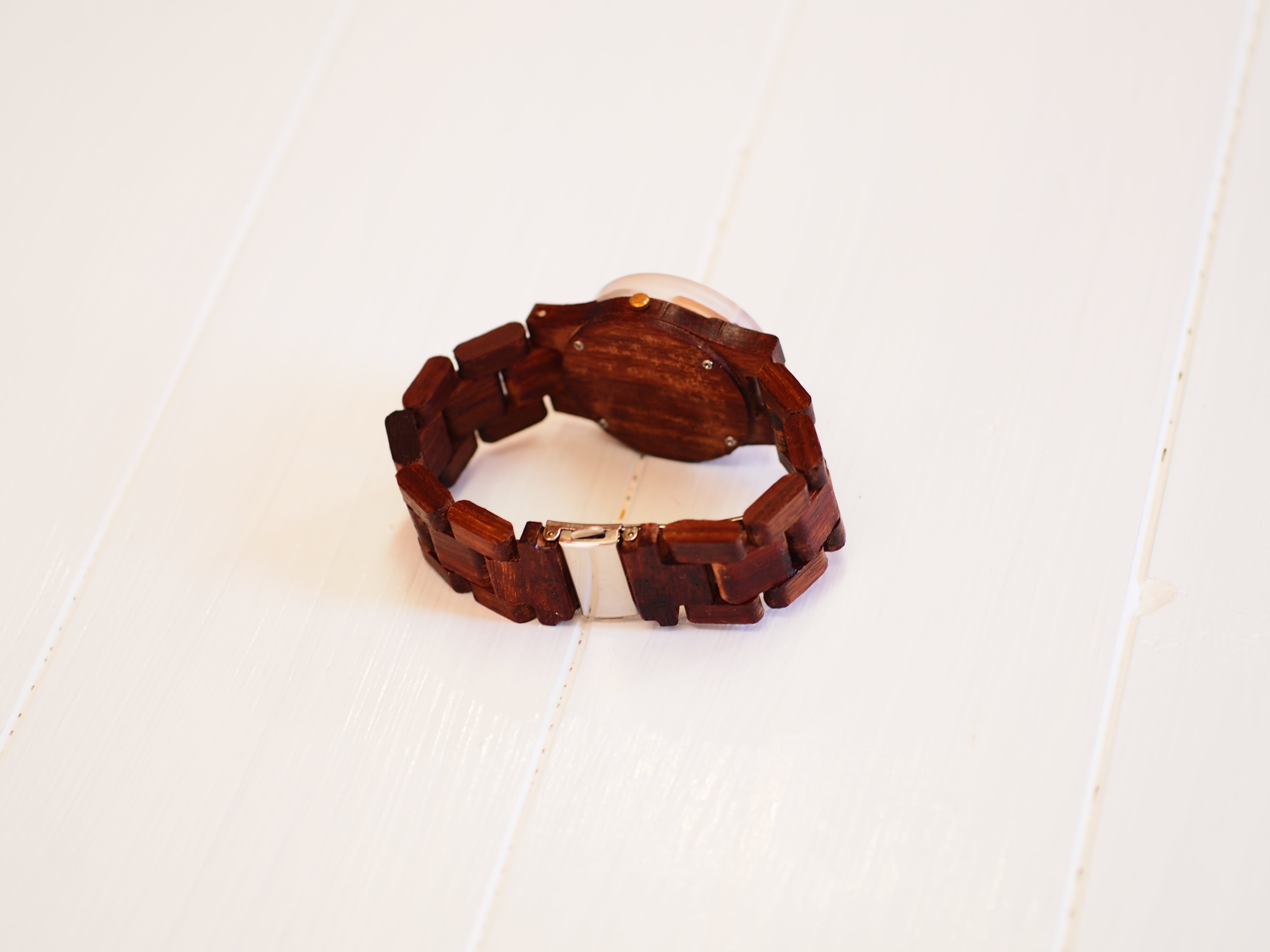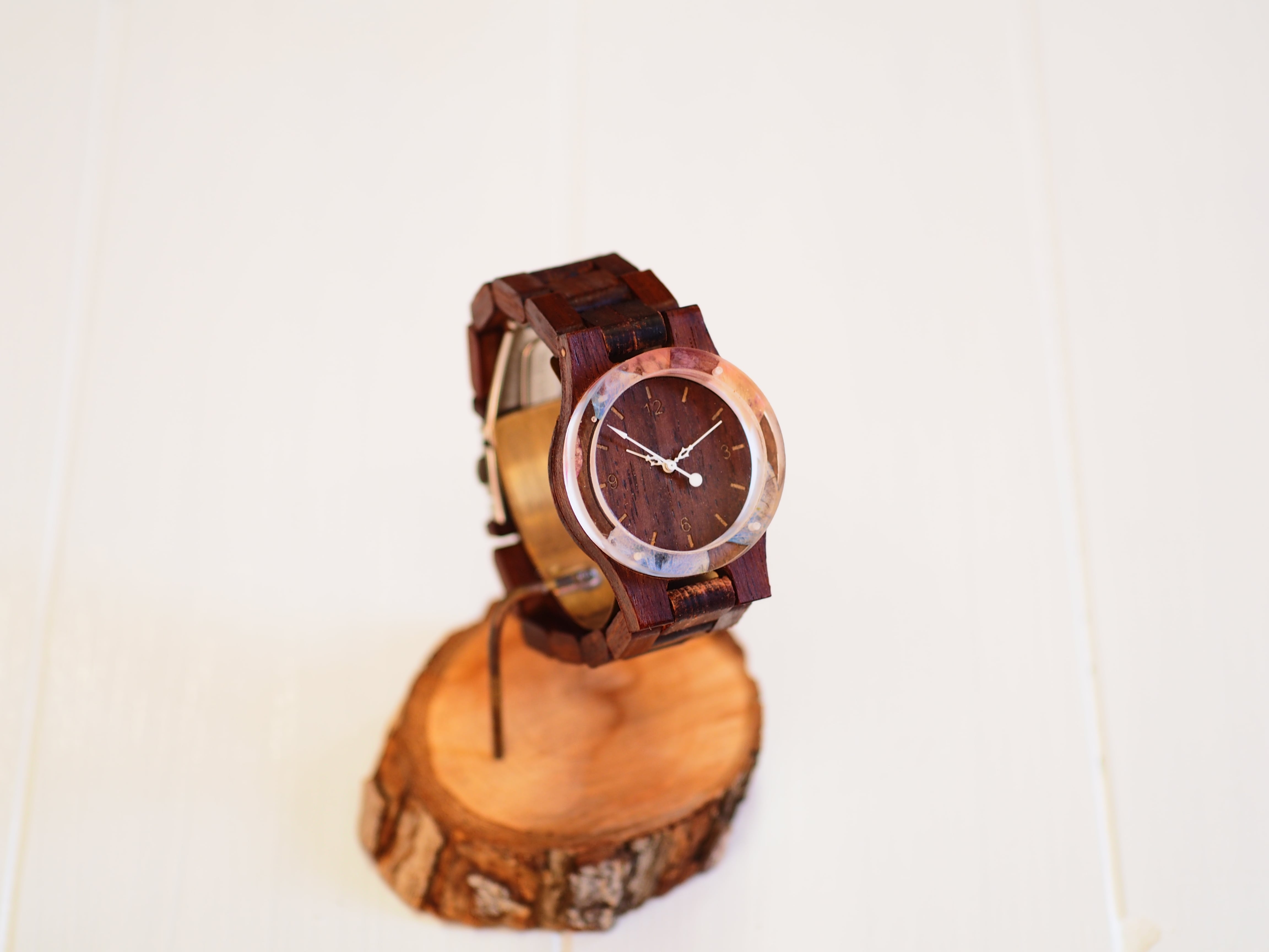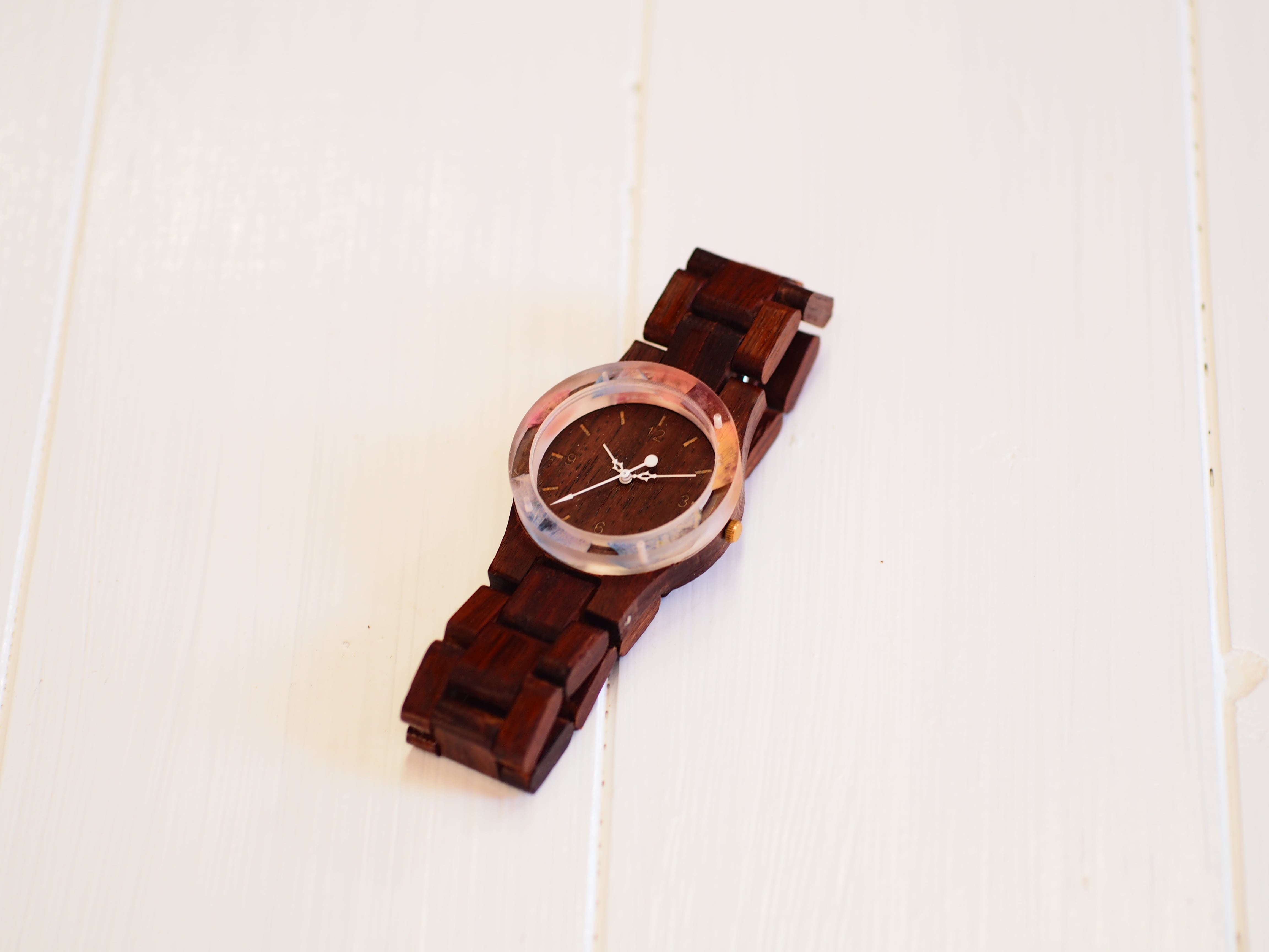 一つ一つ手作業で産み出し、材木に紫檀を使用した木製腕時計。